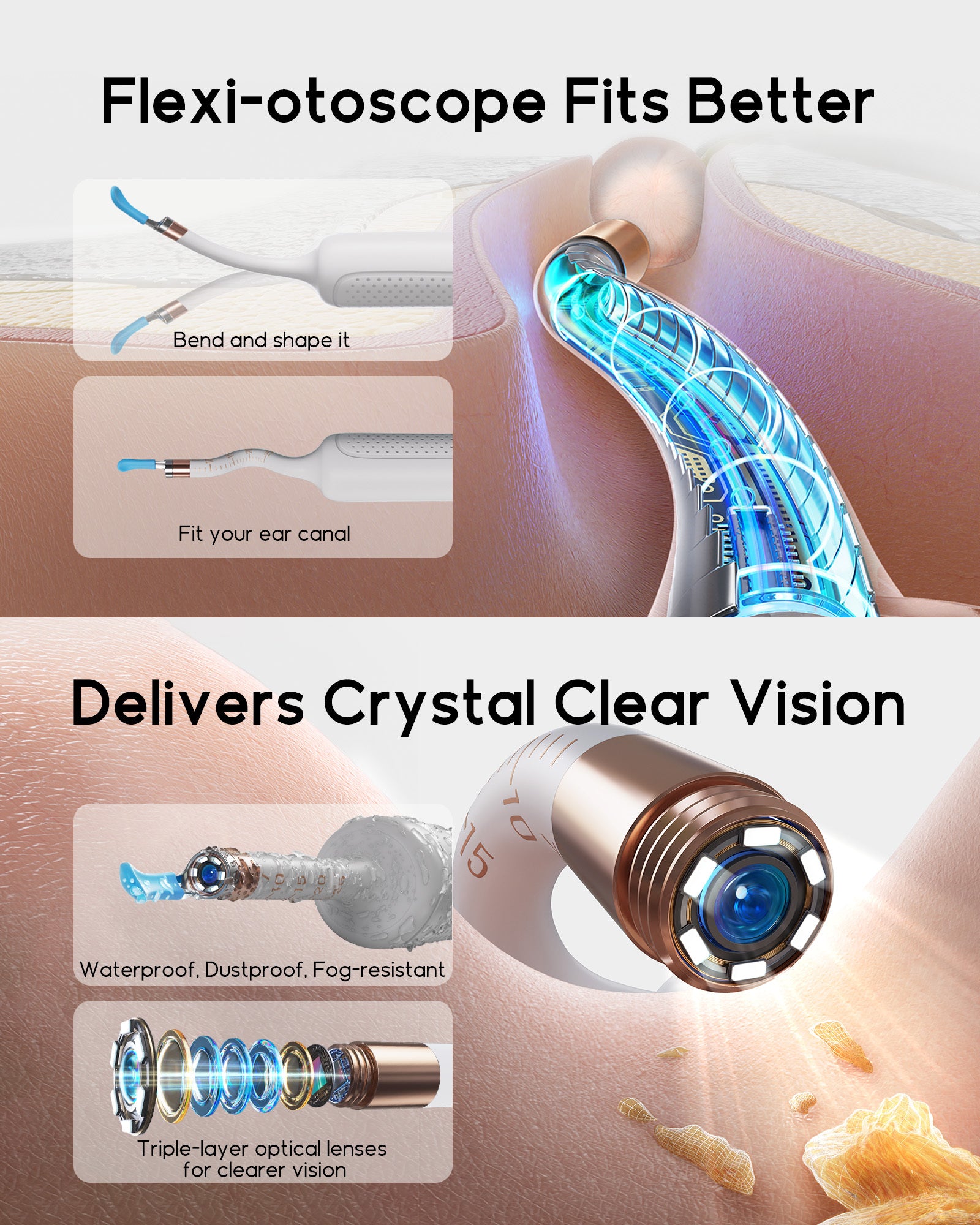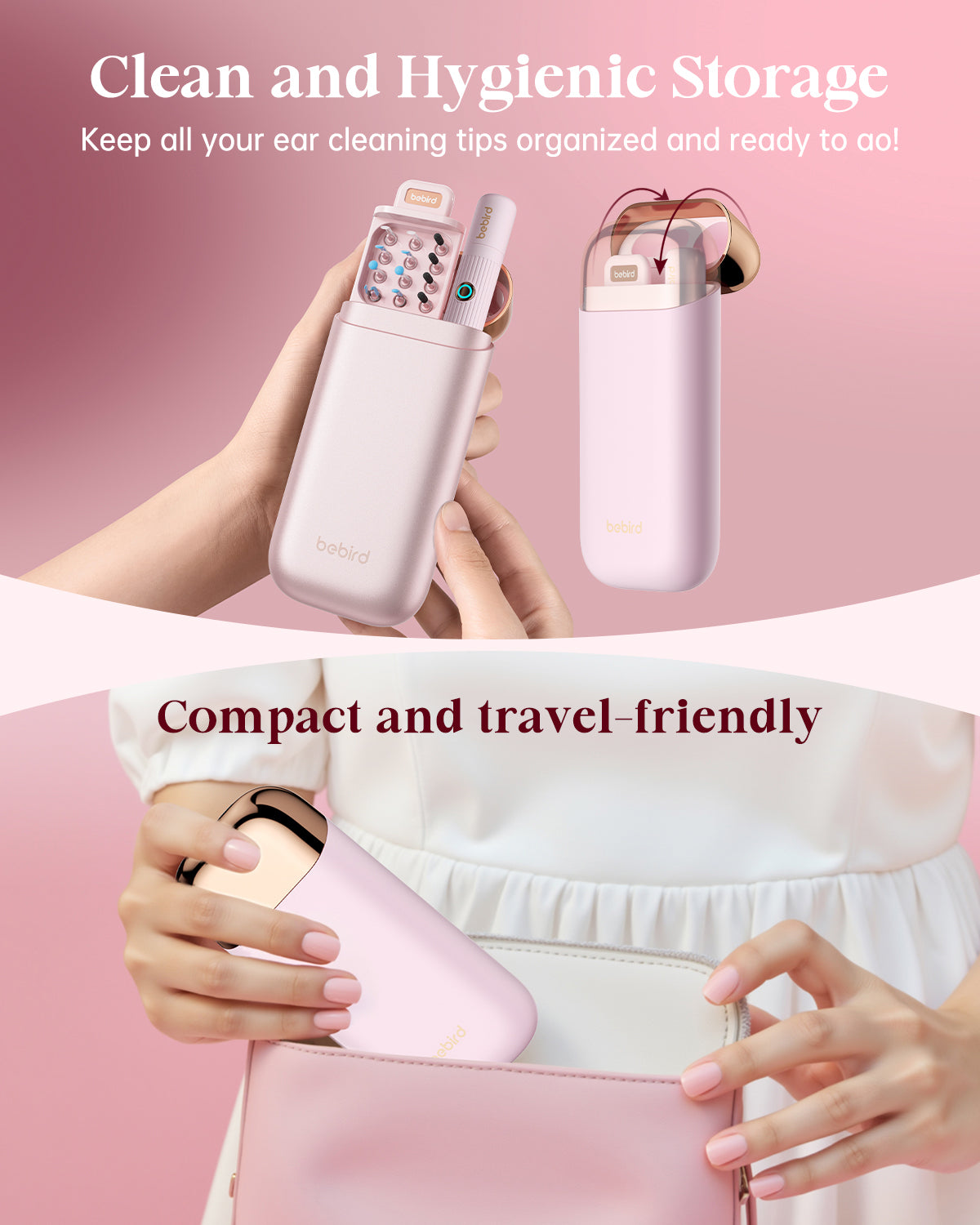 The Bebird EarSight Plus comes with a patent snake-shaped lens sleeve that adapts to various curved and narrow ear canals for precise cleaning. Its full silicone body and advanced hygiene storage make it gentle, portable, and easy to maintain.